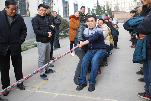 2月12日,院組織了迎新春職工體育活動。本次運動會共有7個參賽隊。項目有拔河、趣味保齡球、夾豆子、夾乒乓球、神投手等。員工們以飽滿的熱情和昂揚的斗志精誠團結、頑強拼搏。最為精彩激烈的要數拔河比賽。比賽前,各工會小組紛紛組織好自己的隊伍,隊員們個個精神抖擻,團結一心,奮力拼搏。當比賽哨聲一響,無論是場上還是場下,員工們都非常給力,富有節奏的吶喊聲、加油聲,使人感到震撼,比賽過程中常出現勢均力敵的精彩“拉鋸戰”。經過緊張激烈的角逐,機械裝備隊獲第一名;條件保障公司隊獲第二名;窯具廠隊和機械廠隊獲并列第三名。
